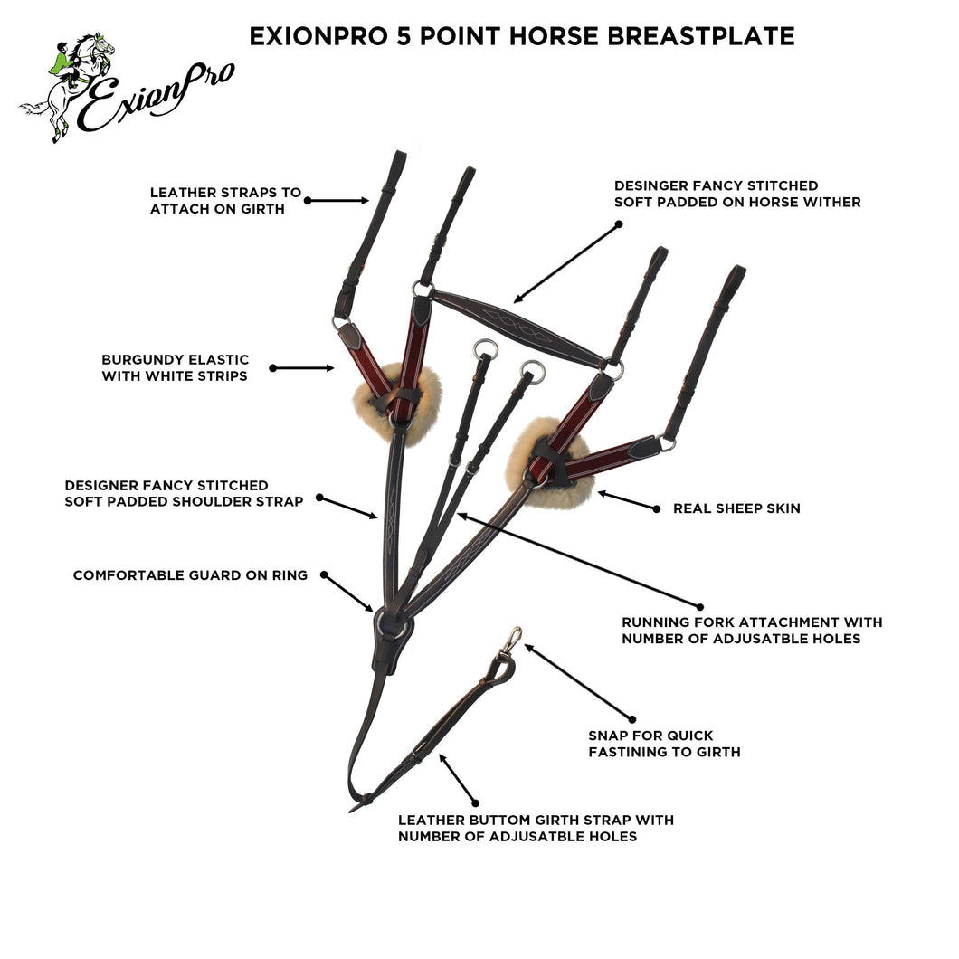 ExionPro brings you the most trendy, fashionable, and very technically crafted Special design breastplate to hold a horse from 5 points to increase the comfort and control of Ride and Mount.