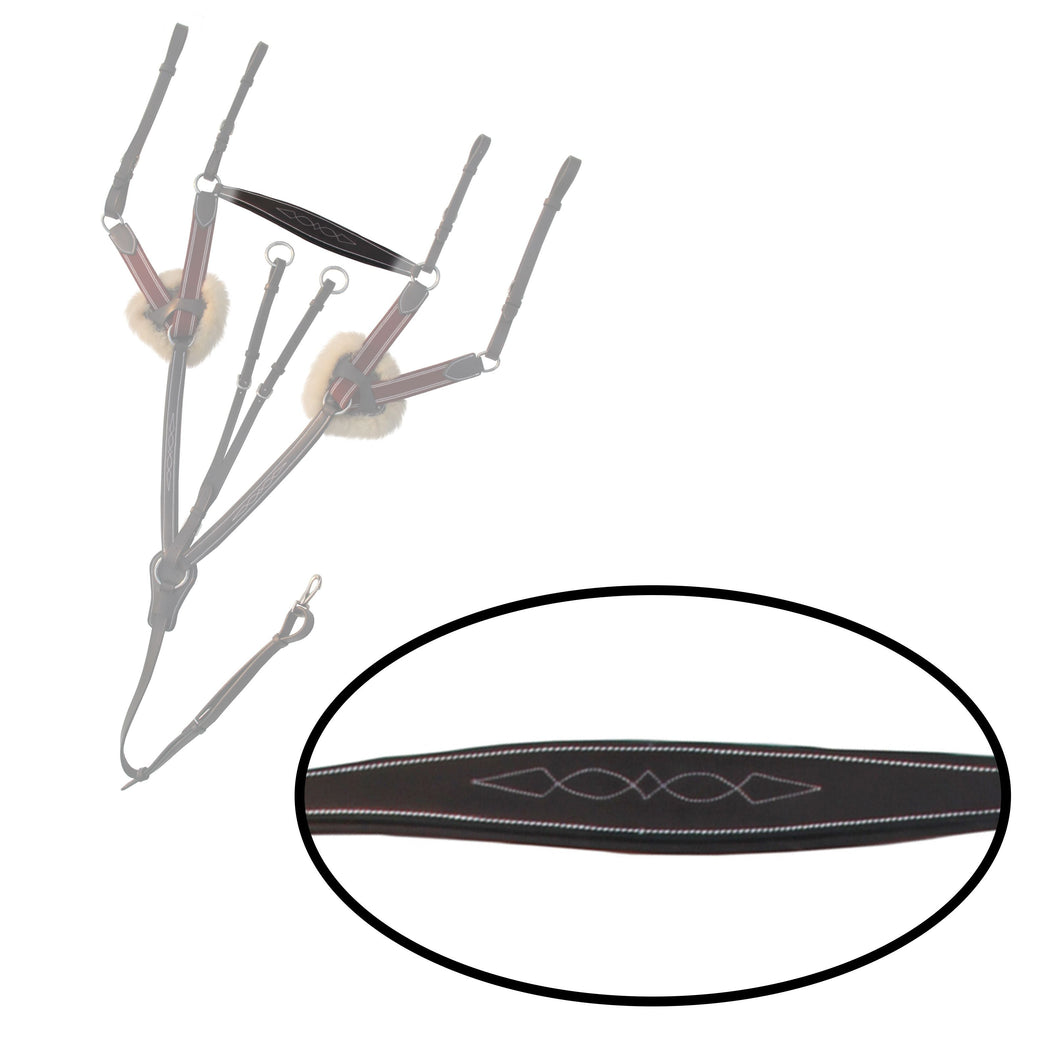 The elasticity of the chest plate ensures ultra-comfortable fitting in squeezing as well as swelling states and makes this breastplate an elegant choice for riders who love style with better control and comfort. Multi Punches adjustment points ensure a perfect fit. Soft padded Wither with Running Attachment makes it durable for show jumping.