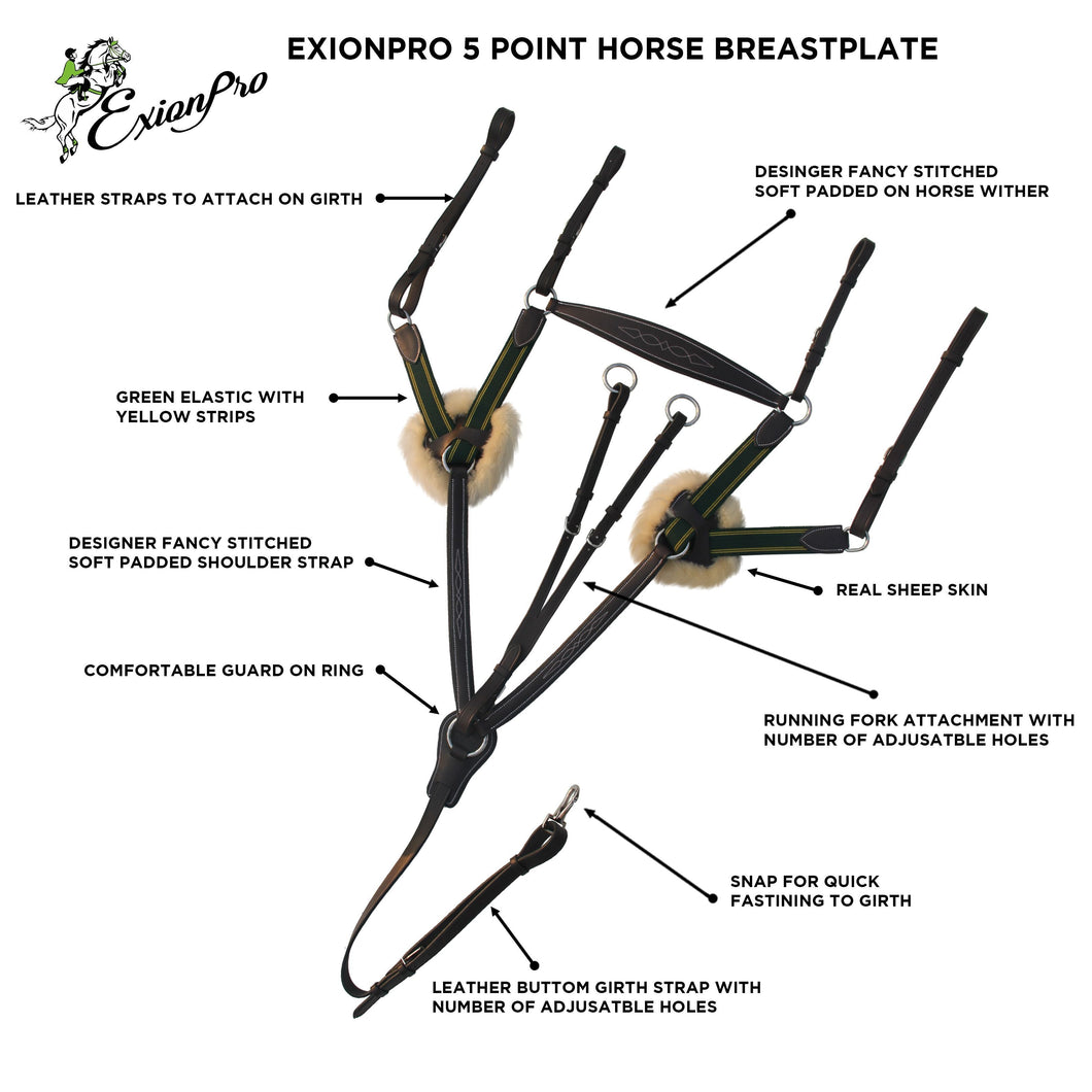 ExionPro brings you the most trendy, fashionable, and very technically crafted Special design breastplate to hold a horse from 5 points to increase the comfort and control of Ride and Mount.
