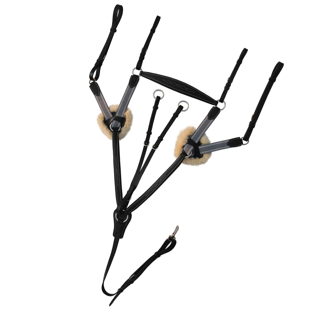 Exion Five Point Breastplate with Running Attachment and Sheepskin Fur Padding - Grey Elastic & White Lines
