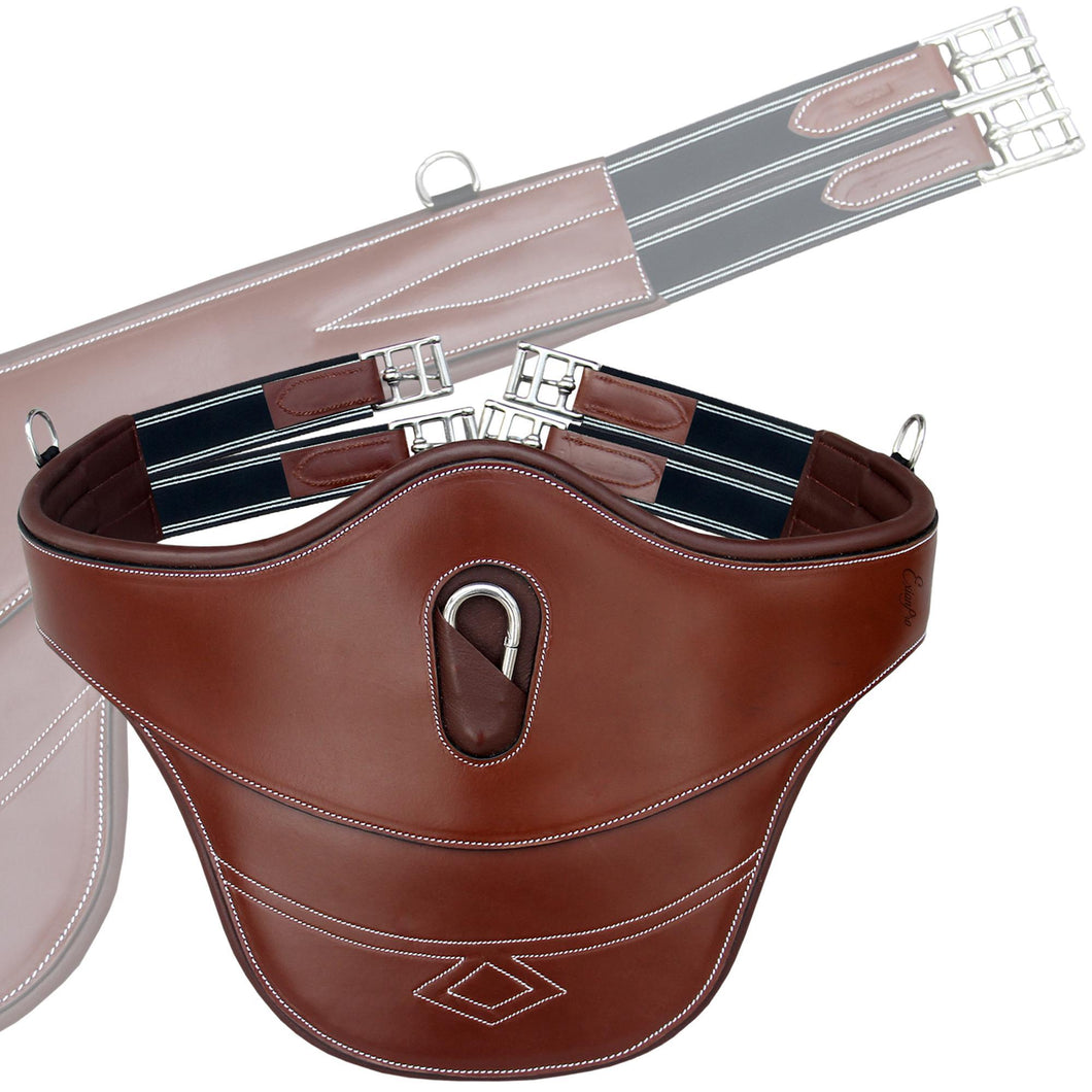 The girth's reinforced belly guard avoids any long-term deformation occurring and allows better shock absorption. The elastic sections on both sides make breathing easier for the horse.