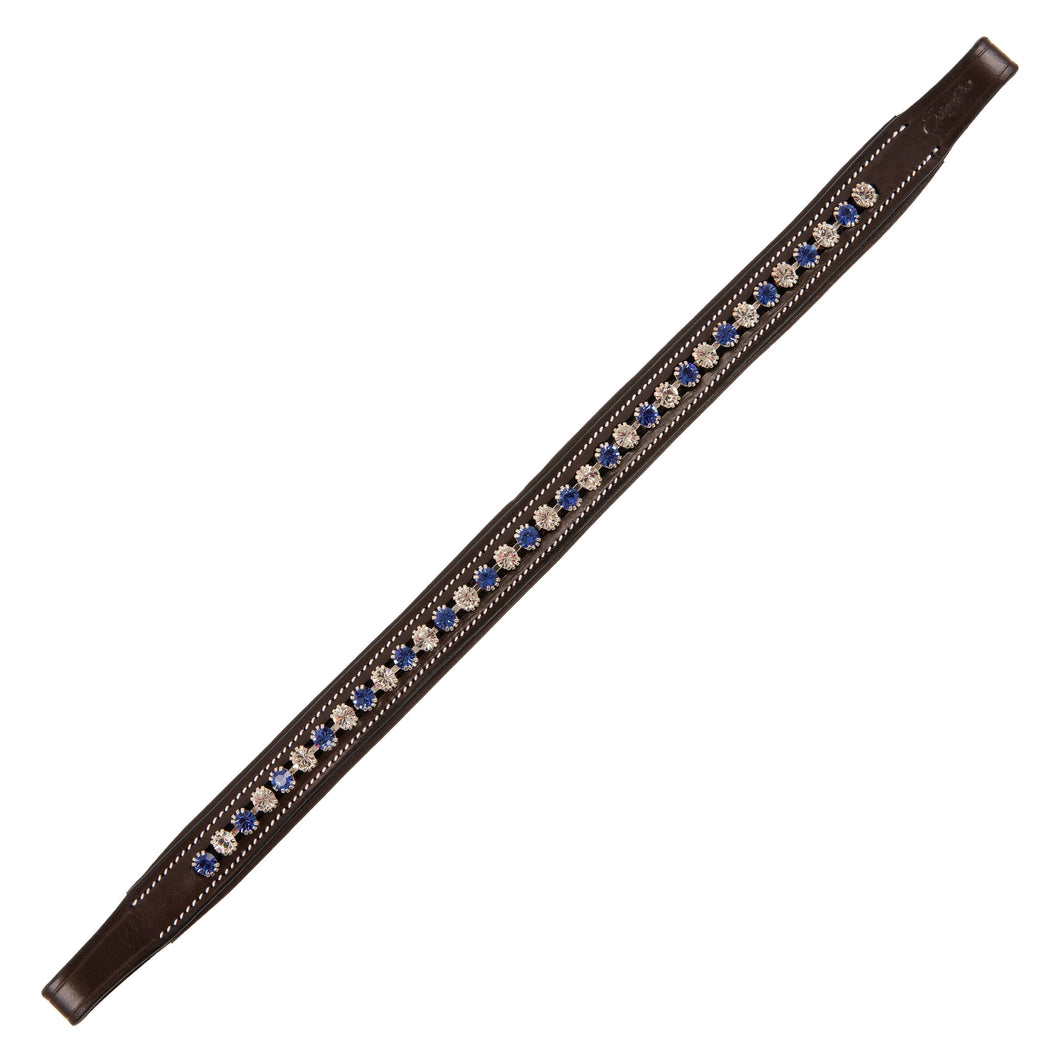 Exion Elegant Blue & Clear Crystal  Padded Leather Curved Browband for Horse Bridles