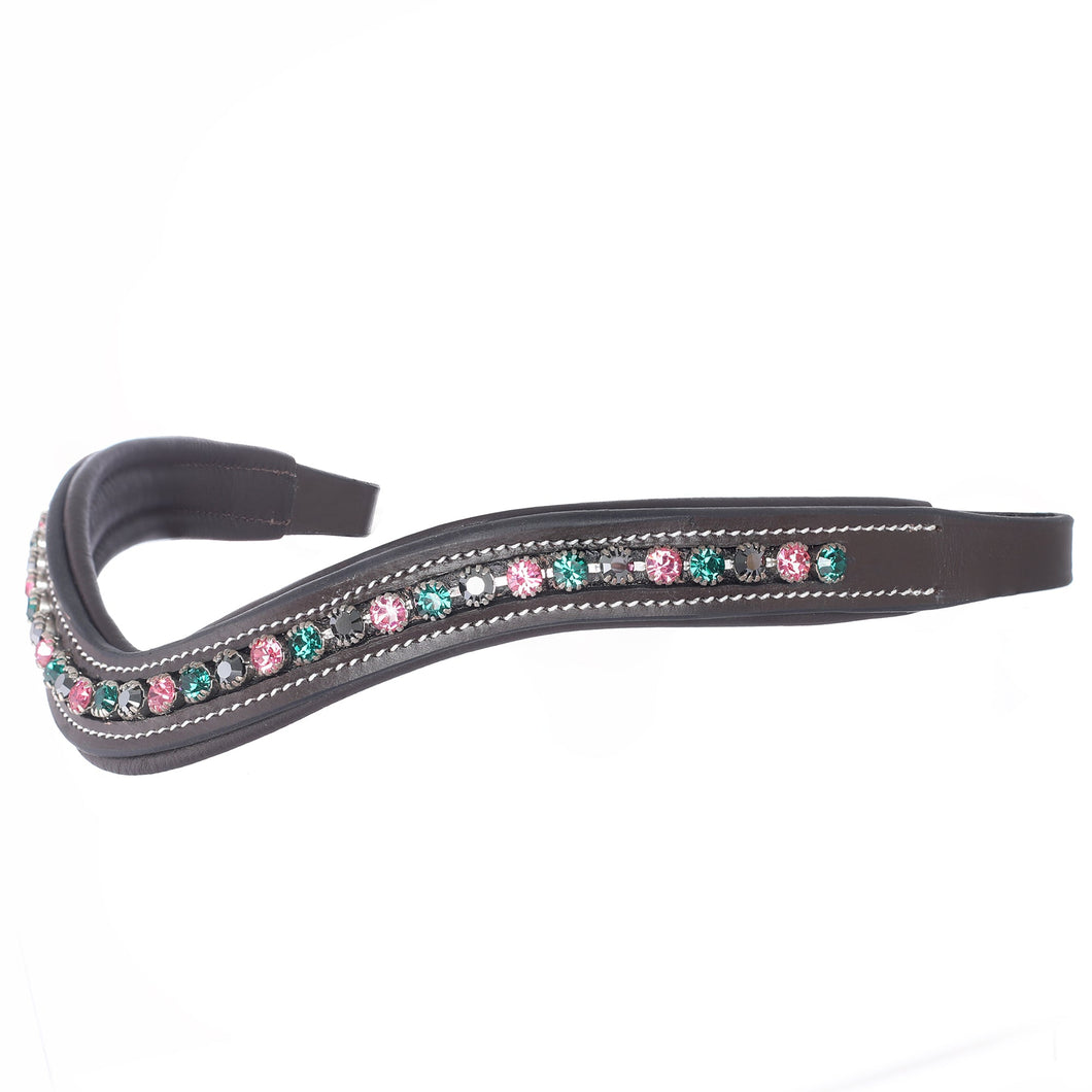 Exion Elegant Deep Curved Soft Padded Rose, Emerald, Jet Hematite Colored Crystal Decorated Browband