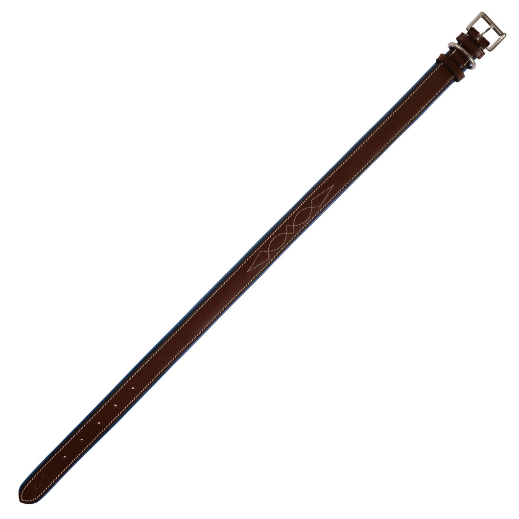 ExionPro Fancy Stitched Padded Leather Dog Collar - Blue Padding