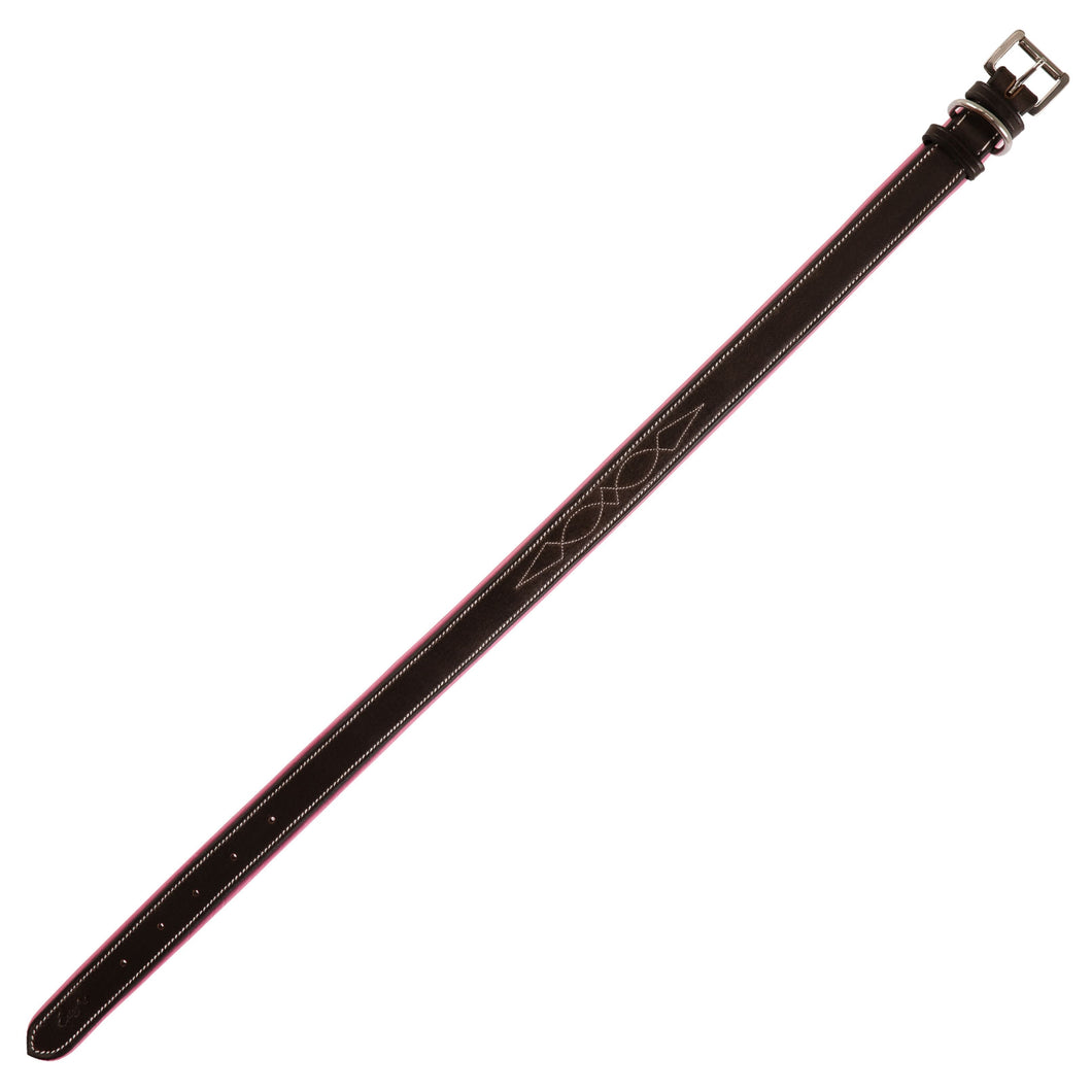 ExionPro Fancy Stitched Padded Leather Dog Collar - Pink Padding