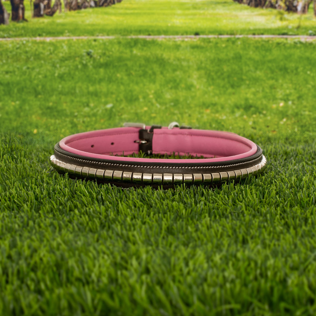 ExionPro Silver Clincher Padded Leather Dog Collar - Pink Padding
