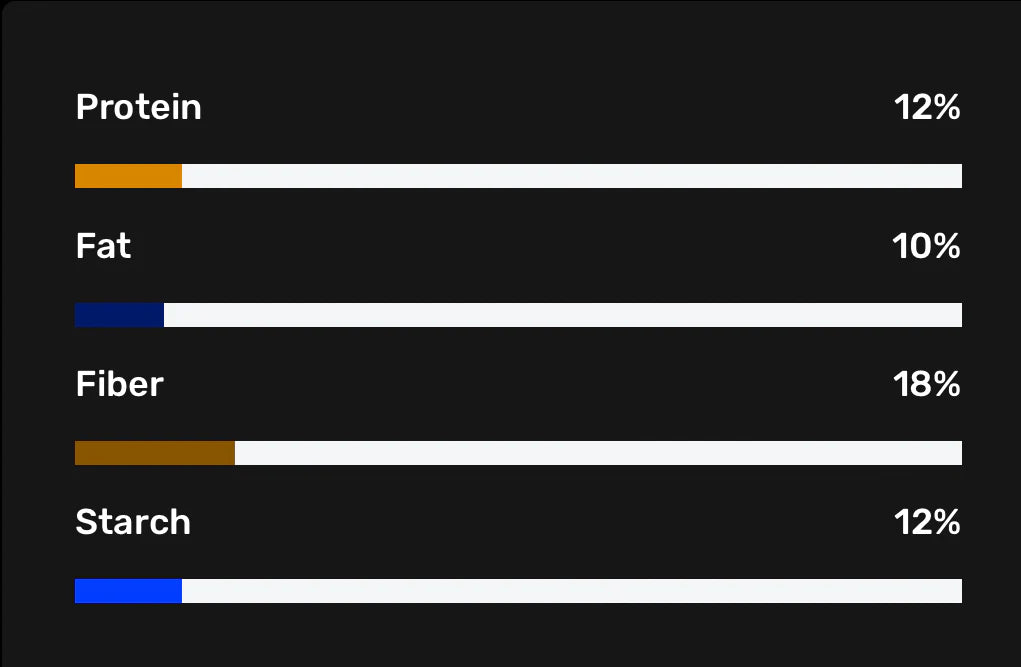 Soybean Hulls, Dried Plain Beet Pulp, Dehulled Soybean Meal, Steam Crimped Oats, Steam Rolled Barley, Ground Oats, Alfalfa Pellets, Wheat Middlings, Alfalfa Meal, Soybean Oil, Ground Flax Seed, Stabilized Rice Bran, Cane Molasses, Phosphoric Acid, Monocalcium Phosphate, Dicalcium Phosphate, Calcium Carbonate, Salt, Yeast Culture, Biotin, L-Lysine, DL-Methionine, Brewers Dried Yeast, , Dried Garlic, Dried Spearmint, Dried Parsley, Dried Red Clover, Dried Rosemary, Dried Balm, Dried Sage, Dried Marjoram, Fenugreek, Hydrated Sodium Calcium Aluminosilicate, Propionic Acid (preservative), Manganese Sulfate, Zinc Oxide, Ferrous Sulfate, Copper Sulfate, Calcium Iodate, Cobalt Carbonate, Selenium Yeast, Zinc Proteinate, Manganese Proteinate, Copper Proteinate, Cobalt Proteinate, Magnesium Oxide, Vitamin A Supplement, Vitamin D3 Supplement, Vitamin E Supplement, Vitamin B12 Supplement, Riboflavin Supplement, Niacin Supplement, d-Calcium Pantothenate, Choline Chloride, Folic Acid, Pyridoxine Hydrochloride, Thiamine Mononitrate.