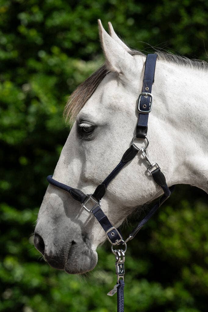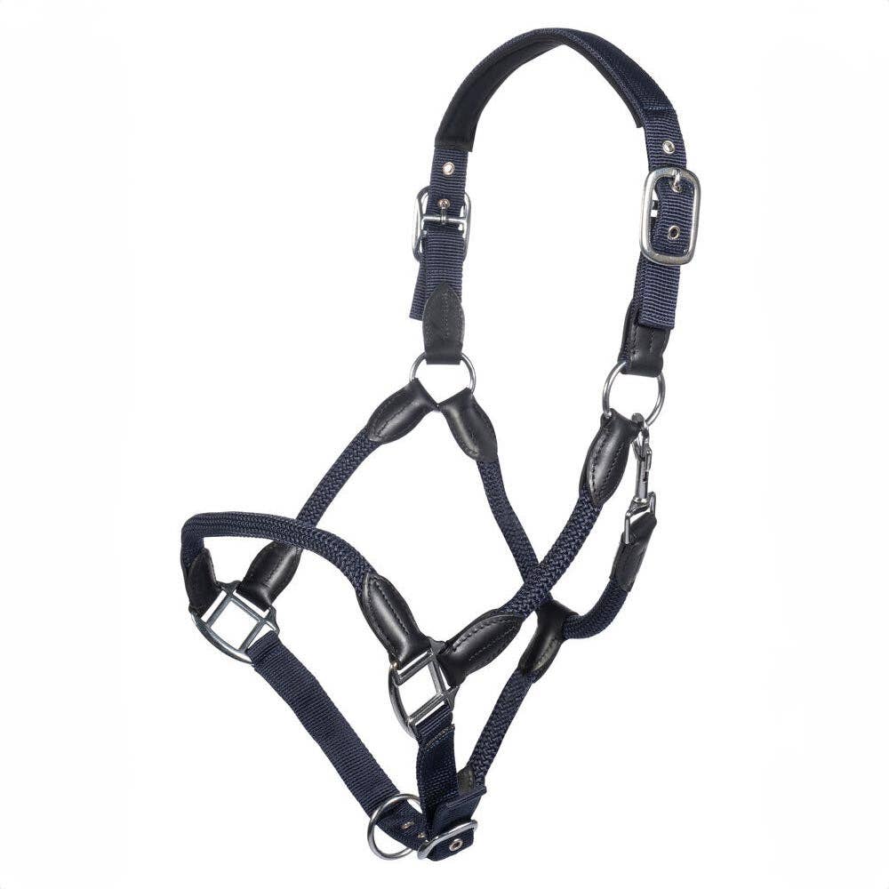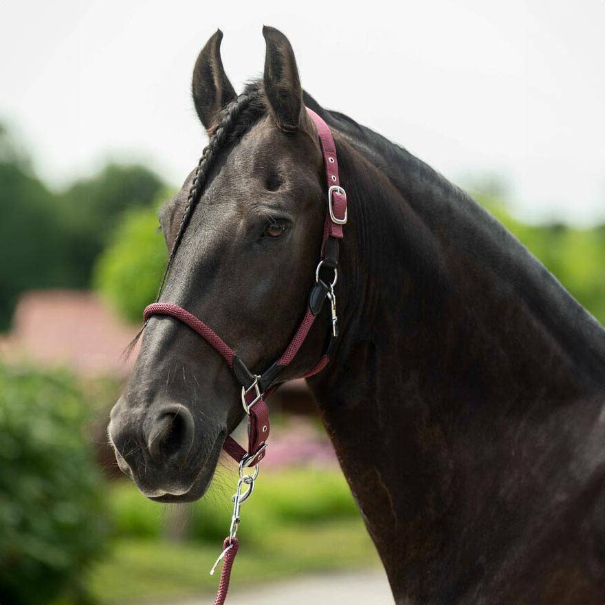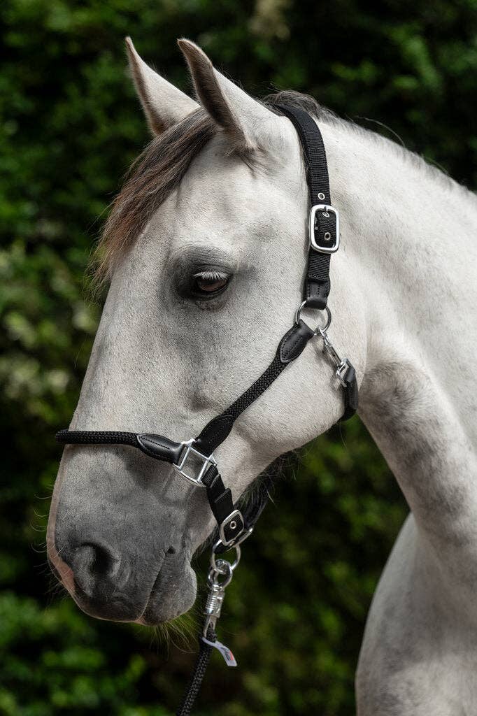 Enhance your horse's comfort and style with the HKM Carlotta Head Collar. Crafted from a durable leather/nylon combination, this head collar features a padded headpiece and adjustable noseband for a personalized fit. Pair it with the matching leadrope for a cohesive look that will turn heads at the barn.