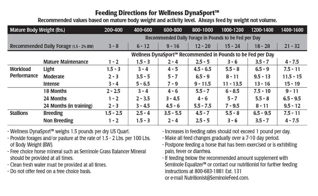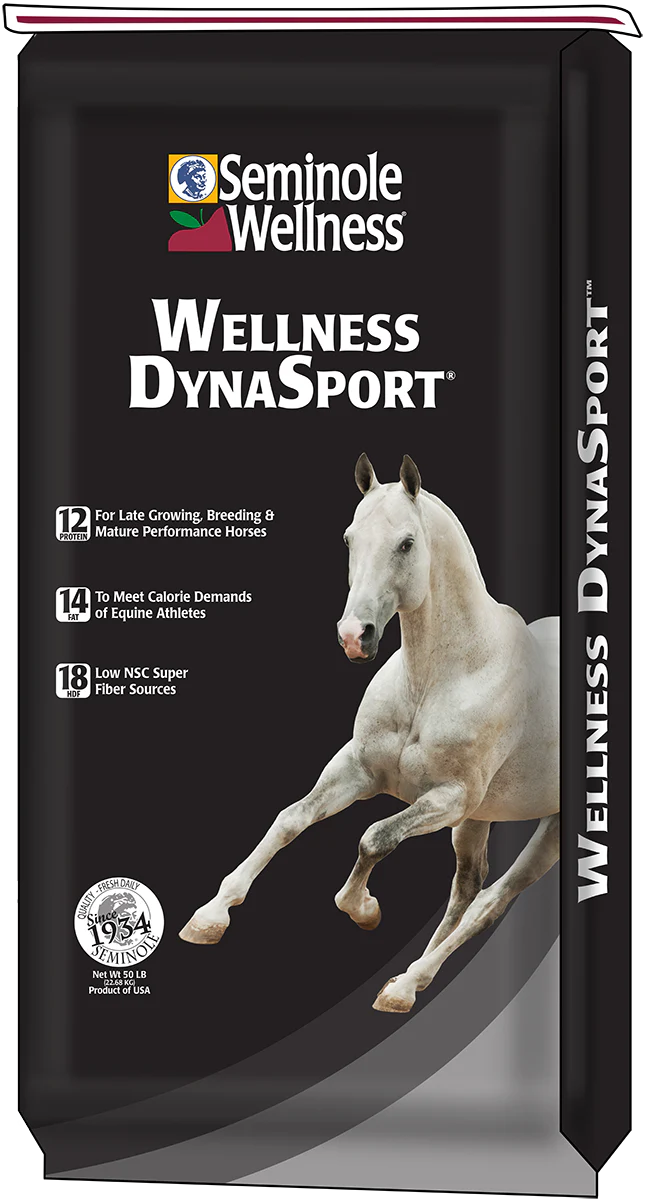 Wellness DynaSport® is a low-starch, super-premium, high-fat, calorie-rich feed for late-growing, breeding, performance, endurance, and show horses.  Designed to provide superior nutrition, Wellness DynaSport® has what it takes to meet the demanding energy requirements of world-class equine athletes. With added fat from multiple sources, including Ultra Bloom®, this feed is sure to provide the endurance and stamina for any sport without creating hyperactivity.  Wellness DynaSport® provides the reliable, superior nutrition needed to maximize the performance and recovery of the elite equine athlete.