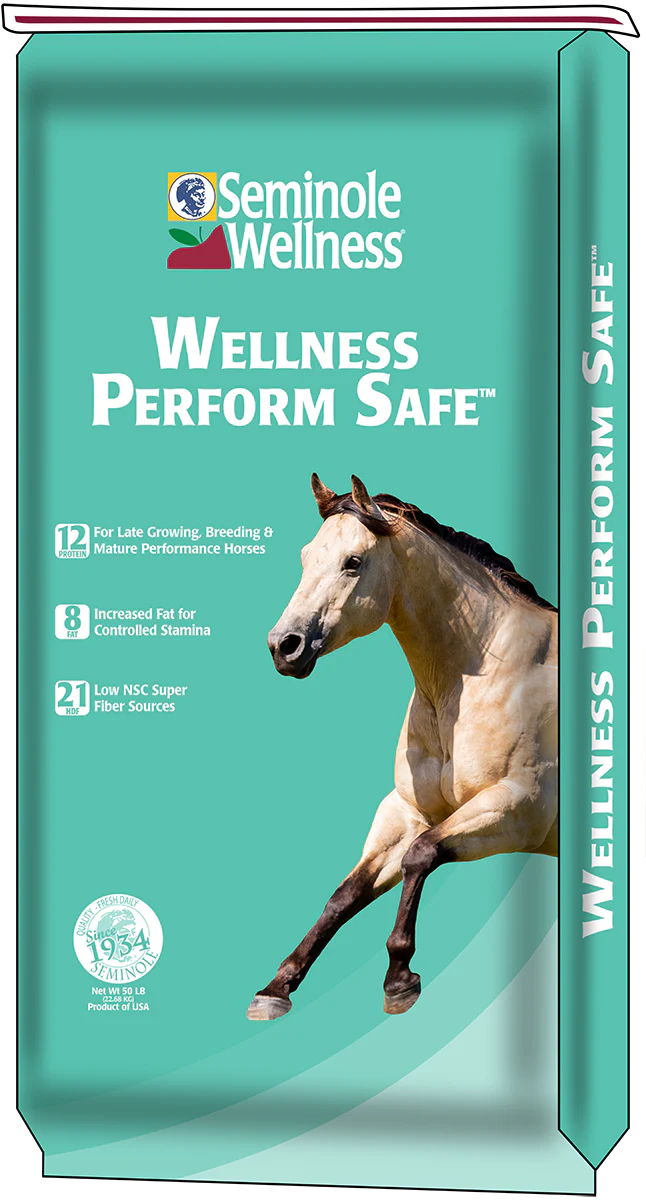 Formulated for the active equine, Wellness Perform Safe™ is a super-premium, low-starch, high-fat, pelleted feed designed to deliver superior performance.  Wellness Perform Safe™ offers an enhanced nutritional package of high digestible fiber and fat from multiple sources combined to deliver maximum digestibility and increased endurance.   An ideal choice for carb sensitive or ulcer-prone horses, the ultra-low starch of Wellness Perform Safe™ reduces hyperactivity and helps improve the horse’s focus, for a championship performance.