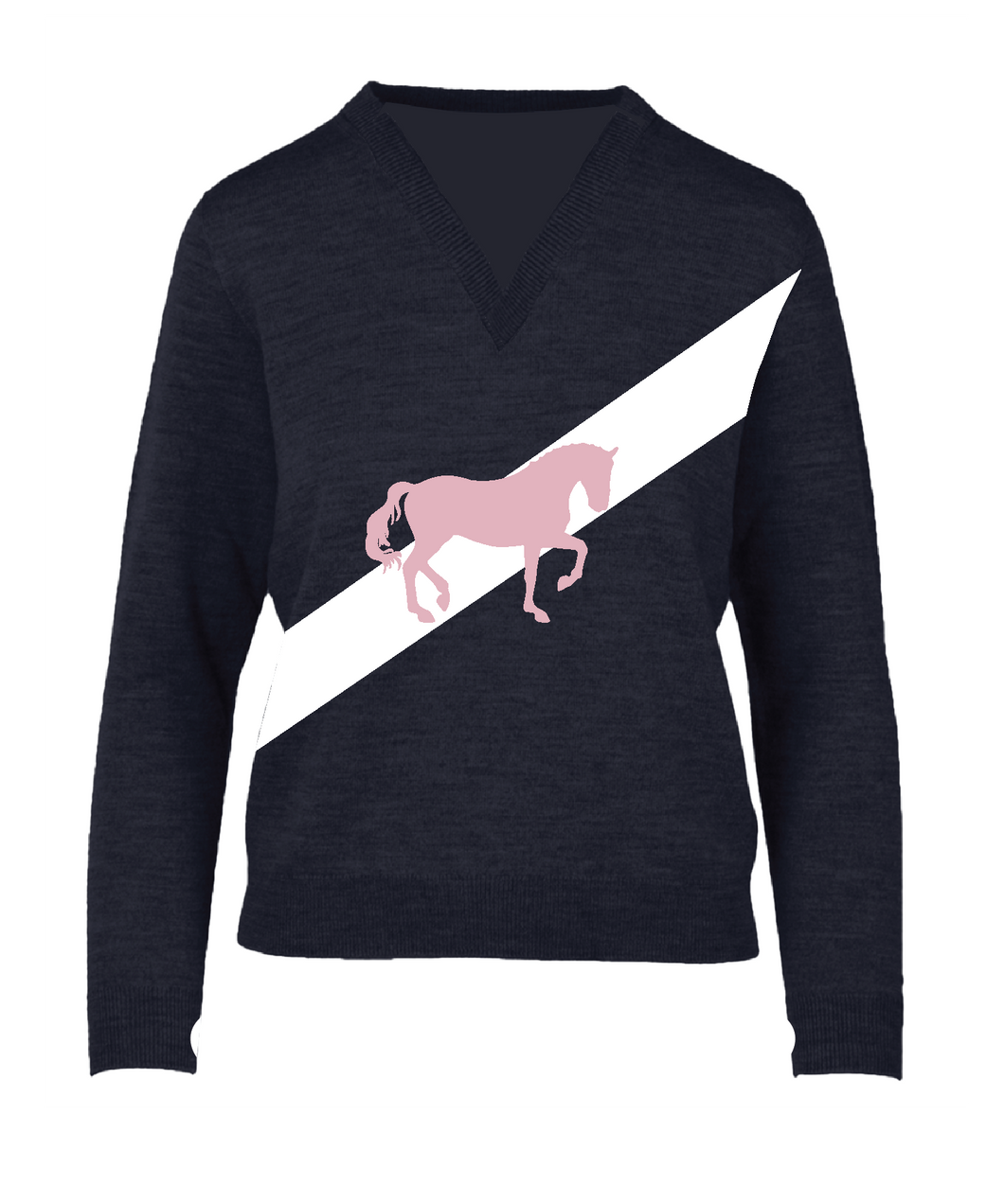 Introducing a custom Vanner House design, The Dressage Sweater is where luxury meets equestrian charm. Crafted from soft, breathable Merino wool, this sweater features a flattering V-neckline with a stunning pony at the center—a true nod to the rider's spirit. Whether you're out on the town or gearing up for your next barn visit, this piece is designed to elevate your style and keep you cozy, no matter the activity.